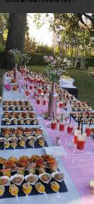 Nous partons sur un dînatoire apéro/entrée , seront proposé des amuse-bouche (Des toasts,Des feuilletées, des verrines,Des brochettes, etc…)beaucoup de choses, bien sympa à déguster en dînatoire servi au buffet ,une Serveuse sera là pour vous faire le service…